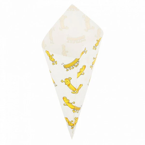 Конус для снеков/фри/орешков Garcia de Pou Chips 400 гр, жиростойкий пергамент, 34*24 см, 250 шт/уп предназначен для хранения, транспортировки и употребления различного фастфуда, производимого в кафе, ресторанах быстрого питания и дома.