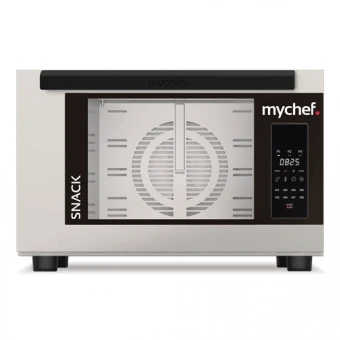 Конвектомат электрический Distform Mychef Snack Air, upper (KSA4100A) используется на предприятиях общественного питания, торговли и пищевых производствах для приготовления различных блюд широкого спектра, а также выпечки хлебобулочных и кондитерских изделий. 2 режима работы - "конвекция" и "конвекция + пароувлажнение" (температура от 30 до 260 °C). Управление при помощи электронной панели с LED-дисплеем: 8 программ быстрого выбора, 3 фазы приготовления с индивидуальными параметрами для каждой. Материал рабочей камеры - нержавеющая сталь AISI304 18/10.