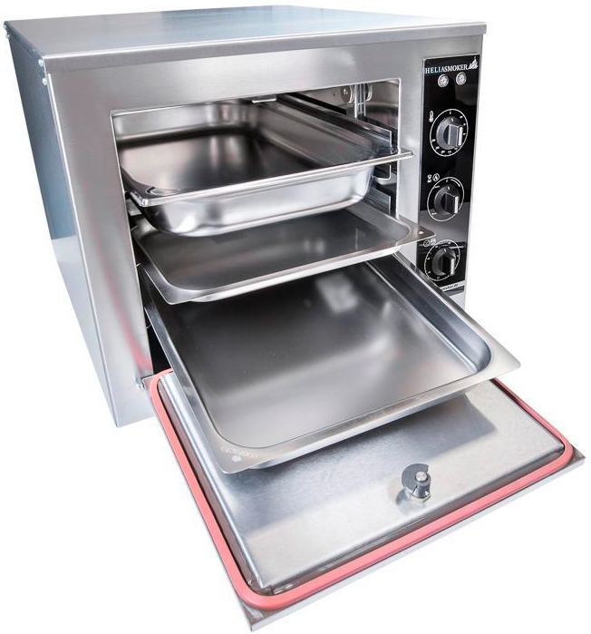 Коптильня Helia Smoker GN предназначена для холодного и горячего копчения, запекания и приготовления на гриле рыбных и мясных продуктов, птицы, овощей, морепродуктов, сыров.