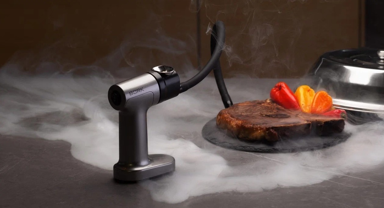 Дымогенератор BORK Z620 обрабатывает продукты холодным дымом и позволяет коптить без непосредственного контакта с огнем не только рыбу и мясо, но также придавать особый аромат овощам, соусам, маслам и даже диетическим блюдам.