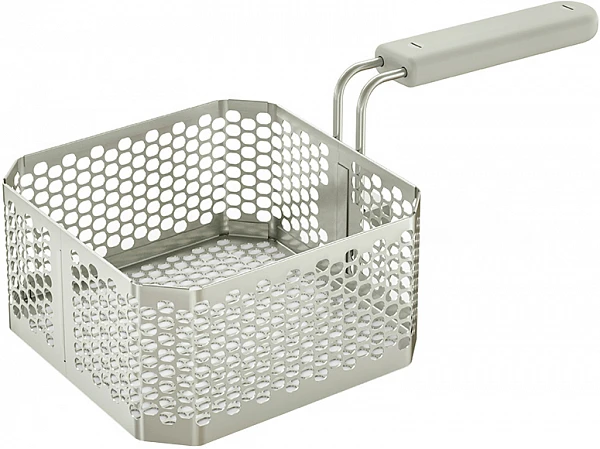Сетка фритюрницы выполнена из нержавеющей стали и имеет удобные ручки с «холодной» пластиковой вставкой.