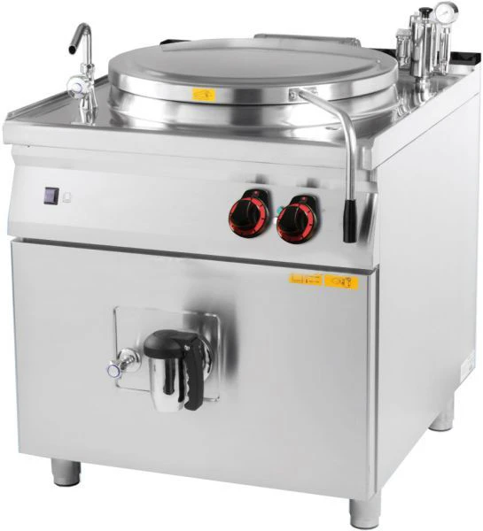 В моделях с ручным приводом блюда сливают вручную. Электропривод позволяет автоматизировать слив готового продукта. В стационарных варочная ёмкость неподвижна. Продукт выгружают вручную или через кран большого диаметра.