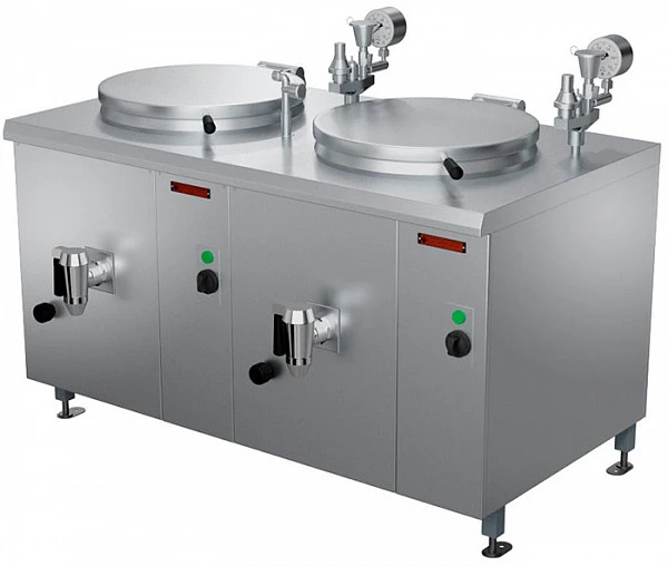 Котел пищеварочный Проммаш КЭ-150Ц с двумя независимыми варочными сосудами с негерметичной крышкой предназначен для приготовления бульонов, первых блюд, компотов, напитков, овощей, гарниров на предприятиях общественного питания традиционным способом. Возможно использование котла с применением функциональных емкостей.