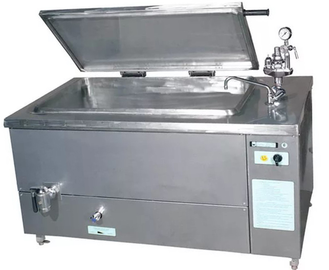 Котел пищеварочный Проммаш КЭ-250КП-2 с прямоугольным варочным сосудом, что создает дополнительное удобство для варки крупных кусков мяса: говядины, свинины, конины (применяется в перерабатывающих производствах).