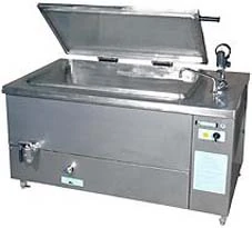 Принцип работы. В отличие от электрического, паровой котел не имеет парогенератора. Процесс варки в нем осуществляется паром, который поступает в паровую рубашку через парозапорный вентиль. Паровой котел не имеет наполнительной воронки и крана уровня. Принцип работы котла основан на обогреве содержимого варочного сосуда паром, который вырабатывается внешней установкой.