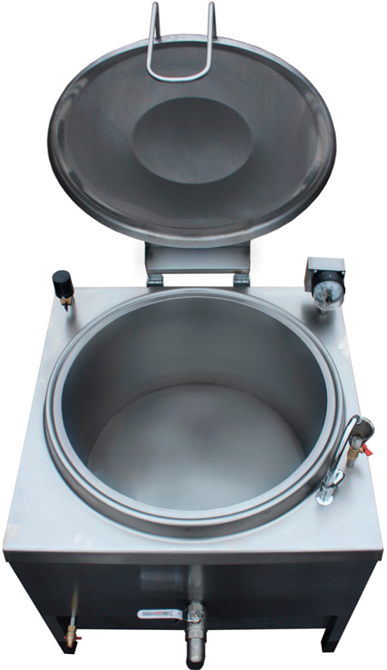 • Контрольный водяной кран для контроля уровня воды в пароводяной рубашке