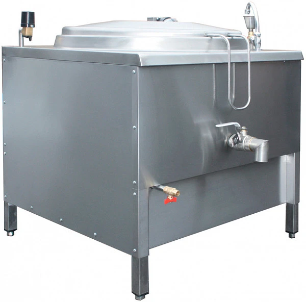 Стационарный котел представляет собой сварную конструкцию, состоящую из внутреннего корпуса (варочной ёмкости), изготовленного из нержавеющей стали, наружного корпуса, облицовки и подставки. Пространство между внутренним и наружным корпусами частично заполняется водой и служит греющей пароводяной рубашкой, обеспечивающей равномерный обогрев варочной ёмкости котла. Котёл закрывается крышкой и обеспечен автоматическим управлением тепловым режимом работы от «сухого хода».