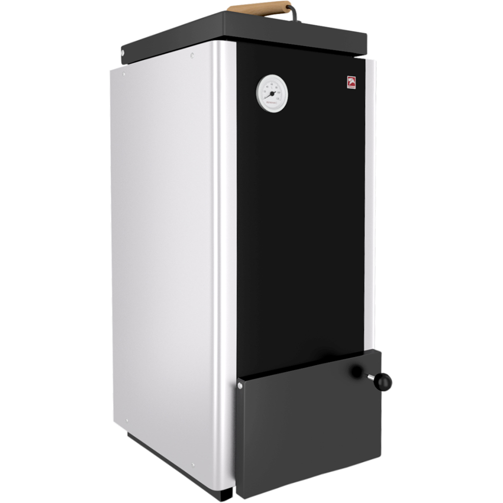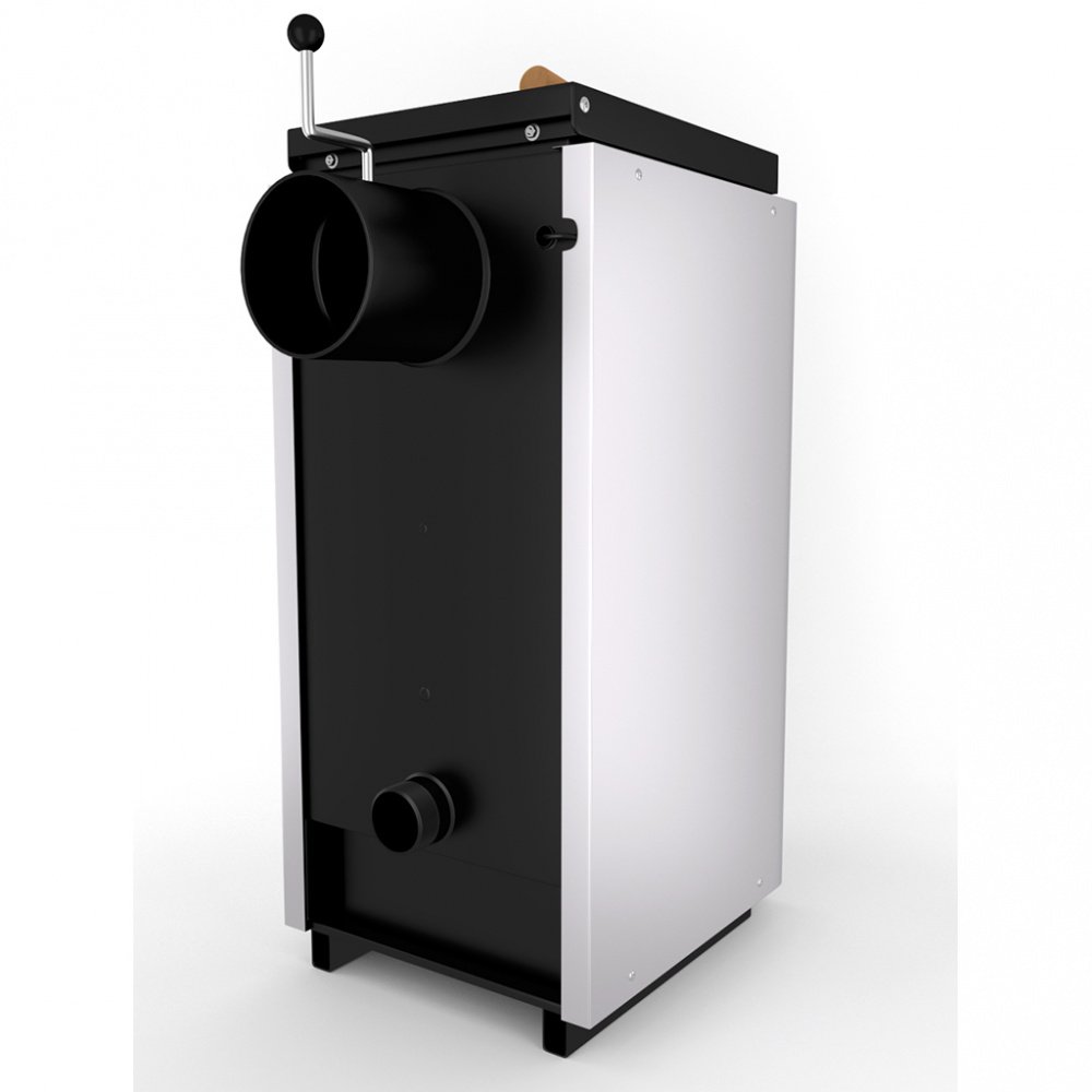 Работает на твёрдом топливе: бурый уголь, каменный уголь (как дополнительное топливо можно использовать древесину)