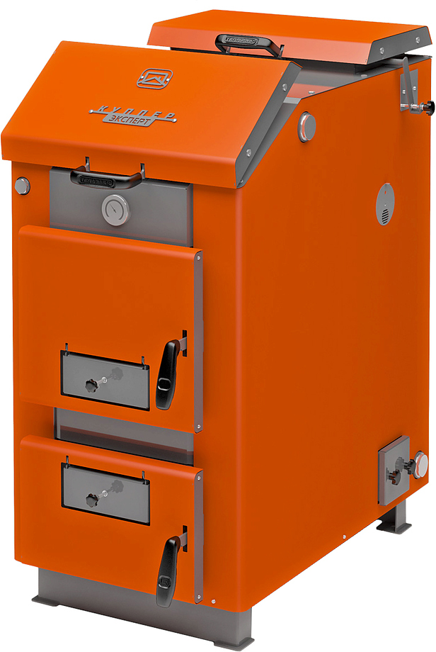 Котел твердотопливный Теплодар КУППЕР ЭКСПЕРТ-30 (2.0) используется для обогрева частных домов, гаражей, дач и других помещений, оборудованных системой водяного отопления с принудительной циркуляцией теплоносителя, как самостоятельный источник тепловой энергии или как дополнение к существующим системам отопления. Модель имеет двухшахтную конструкцию с большой площадью контакта с горячими дымовыми газами, оснащена развитой поверхностью водяной рубашки и водотрубными теплообменниками. Корпус котла выполнен из качественной конструкционной стали, боковые поверхности корпуса водяной рубашки теплоизолированы базальтовым картоном и облицованы декоративными панелями, дверные ручки - из жаростойкого силикона.
