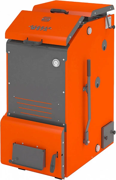 Котел твердотопливный Теплодар КУППЕР МЕГА-32 используется для обогрева частных домов, гаражей, дач и других помещений, оборудованных системой водяного отопления с принудительной циркуляцией теплоносителя. Модель имеет шахтную конструкцию с зоной горения и зоной теплообмена с развитой трехходовой схемой теплообменника. Корпус котла выполнен из качественной конструкционной стали, боковые поверхности корпуса водяной рубашки облицованы декоративными панелями, колосник - из чугуна.