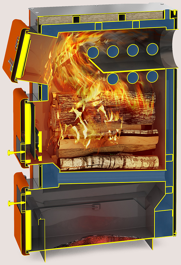 Зольная - для регулировки интенсивности горения, оснащена заслонкой подачи воздуха под колосник