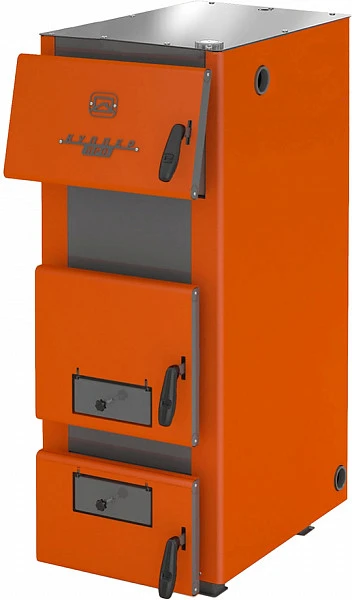 Котел твердотопливный Теплодар КУППЕР ПРО-36 (2.0) используется для обогрева частных домов, гаражей, дач и других помещений, оборудованных системой водяного отопления с принудительной циркуляцией теплоносителя, как самостоятельный источник тепловой энергии или как дополнение к существующим системам отопления. Модель оснащена развитой поверхностью водяной рубашки и водотрубным теплообменником, обеспечивающими теплосъем со всех поверхностей топки. Корпус котла выполнен из качественной конструкционной стали, боковые поверхности корпуса водяной рубашки теплоизолированы базальтовым картоном и облицованы декоративными панелями, дверные ручки - из жаростойкого силикона.