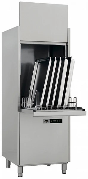 Котломоечная машина Apach AK 902 используется на предприятиях общественного питания и торговли для мойки котлов, противней, подносов и прочего кухонного инвентаря