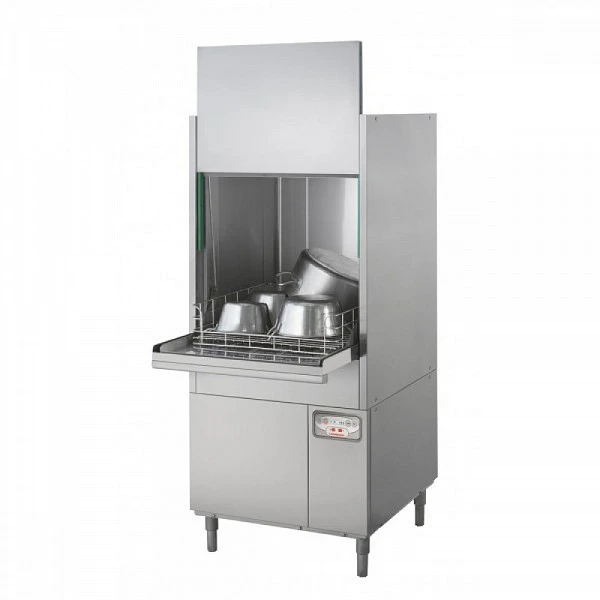 Используется для мытья контейнеров, противней для выпечки, гастроемкостей GN, кастрюль, сковородок, транспортировочных термосов и другого кухонного инвентаря. Такую машину рекомендуется применять на крупных предприятиях общественного питания в моечных цехах.