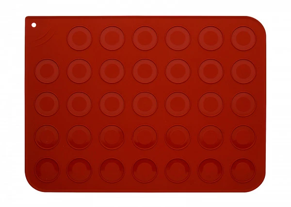 Коврик для выпечки макаронс Luxstahl 300х400 мм [30TM3001R] – это силиконовый мат со специальной разметкой для равномерного распределения теста. Изготовлен этот коврик из качественного пищевого силикона, который выдерживает температуру от -60°С до +260°С. С помощью данного коврика одновременно можно испечь 34 половинок пирожных (17 макаронc). Отсаживать тесто на силиконовый коврик удобнее из специального кондитерского инструмента.