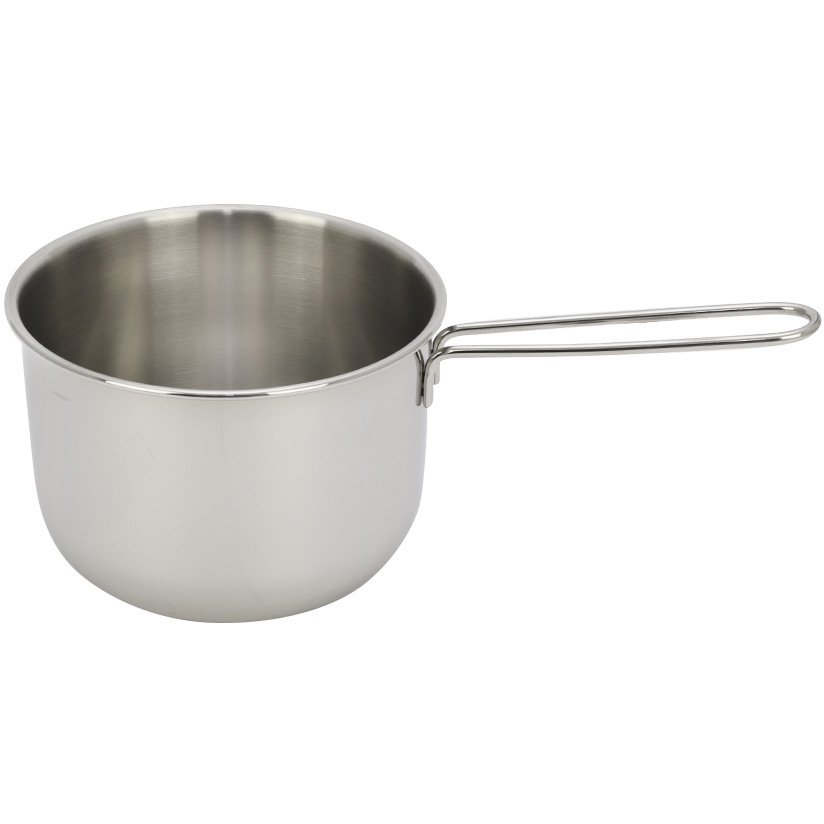 Ручка ковша, прутковая, прикреплена к корпусу надёжной точечной сваркой, она эргономична и функциональна. Ручки незначительно нагреваются теплом от корпуса посуды при условии, что диаметр дна посуды совпадает или больше на 10–15 % диаметра конфорок. Но, несмотря на это, для защиты рук мы рекомендуем всегда использовать специальные кухонные прихватки из силикона или текстиля.