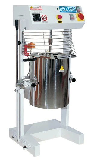 Нагревание осуществляется с помощью нагревательного масла, находящегося между двумя стенками дежи, благодаря чему нагревание очень равномерное и масса не пригорает.