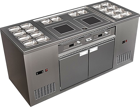 2 охлаждаемые ванны вместимостью 8 емкостей GN 1/6 глубиной 150 мм каждая