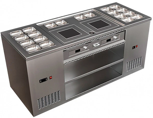 2 охлаждаемые ванны вместимостью 8 емкостей GN 1/6 глубиной 150 мм каждая