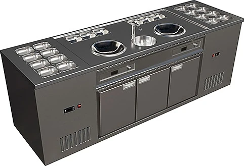 2 охлаждаемые ванны вместимостью 8 емкостей GN 1/6 глубиной 150 мм каждая
