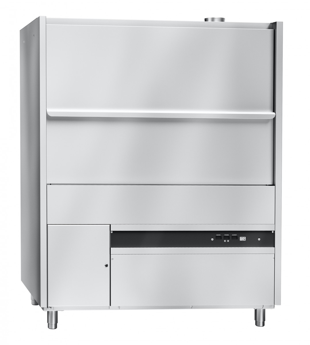 Управление работой машины осуществляется с кнопочной электронной панели, на которую во время работы машины выводится информация об оставшемся времени мойки, температуре в ванне и бойлере.