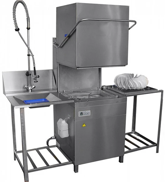 Купольная посудомоечная машина Гродторгмаш МПУ-700М без сливной помпы предназначена для мытья в кассетах тарелок, суповых мисок, стаканов, столовых приборов и подносов на предприятиях общественного питания с числом посадочных мест до 50 с применением моющих и ополаскивающих средств.
