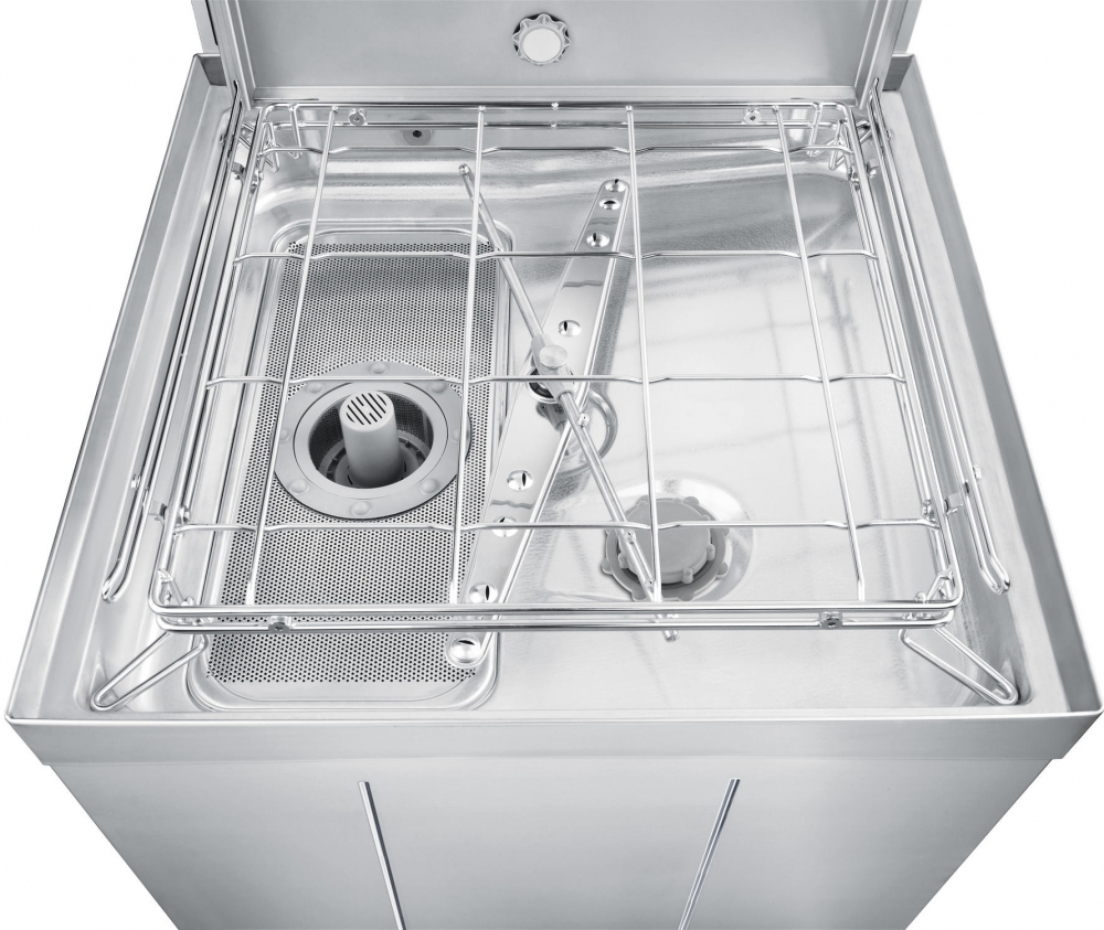 встроенным водоумягчителем и встроенной системой рекуперации пара SHR серии Topline используется на предприятиях общественного питания и торговли для мойки столовых приборов, тарелок, стаканов, чашек и другой посуды. Модель оснащена электронной панелью управления. Корпус, моющие и ополаскивающие рукава выполнены из нержавеющей стали AISI 304.