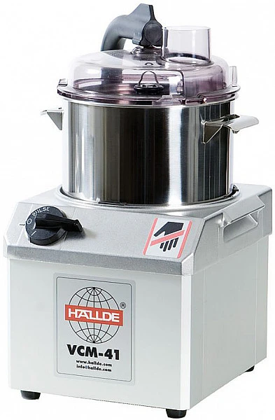 Куттер Hallde VCM-41 предназначен для переработки влагосодержащих, сухих и жидких пищевых продуктов: измельчение, мелкая нарезка и перемешивание практического любого типа продукта - от овощей до орехов, приготовление ароматизированных масел, майонеза, десертов, фарша, пюре, паштетов, панировочных сухарей и т.п. Модель подходит для кухонь детских садов, домохозяйств, армейских столовых, морских судов, ресторанов, отелей, предприятий общественного питания, пекарен, кафе/баров, супермаркетов и т.д.