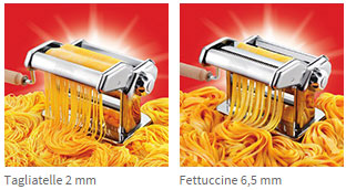 Модель оснащена насадкой Duplex для 2-х видов пасты: тальятелле 2 мм и феттучини 6,5 мм.