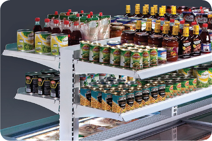 • Одноуровневая, двухуровневая островная и пристенная стеллажная надстройка, с возможностью установки LED-подсветки полок.