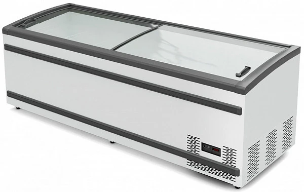 Ларь-бонета с раздвижными створками «Корсика» гармонично впишется как в небольшой продуктовый магазин, так и в огромный зал торгового центра.