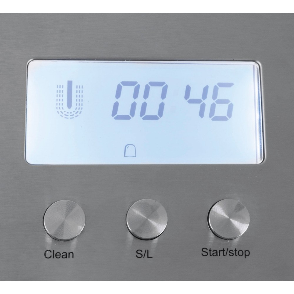 Отличается простотой в управлении с помощью кнопок. Вся информация о процессе приготовления выводится на дисплей. Позволяет выбирать размер кубика. Мелки кубик (S) для напитков, которые пьются через трубочку, а крупный (L) – для многолетнего коньяка и виски. Также встроена регулируемая система очистки и оповещение о отсутствии воды в резервуаре.