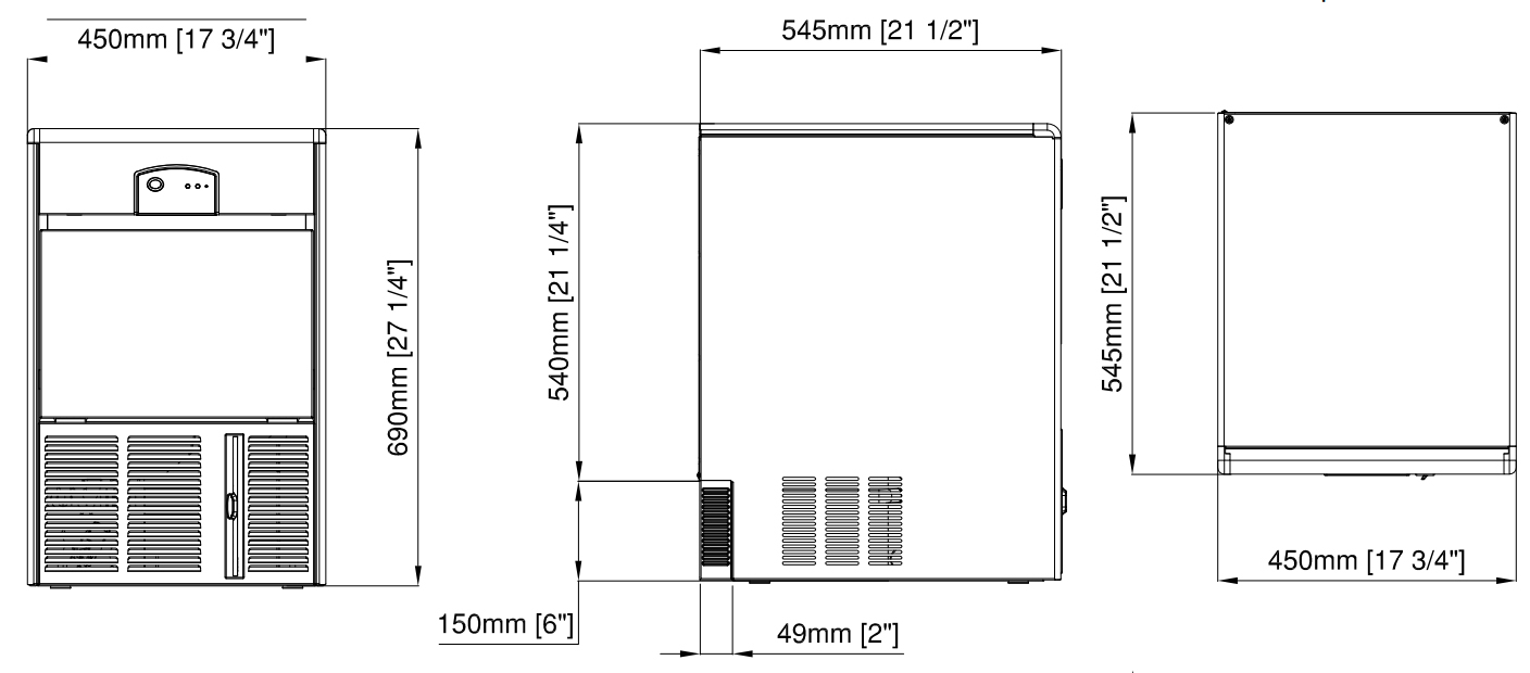 (!) Макс. производительность при t окружающей среды +10 °С и t воды +10 °С: 35 кг/сутки