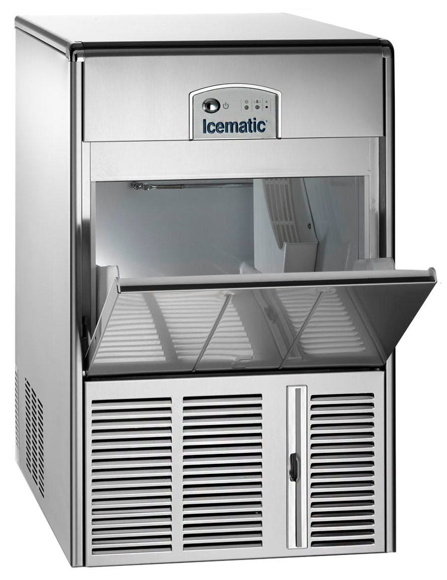 Льдогенератор Icematic E35 W производит пальчиковый лед, напоминающий форму наперстка — эта разновидность льда обладает самой большой эффективностью охлаждения среди своих аналогов и дольше сохраняет низкую температуру за счет большей площади соприкосновения с жидкостью.