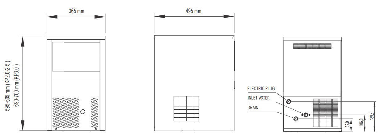 Корпус льдогенератора Kastel KP 2.5/A изготовлен из нержавеющей стали.