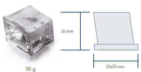 Производительность при температуре окружающей среды +10 °С и температуре воды +10 °С: 154 кг/сутки (15400 кубиков льда)
