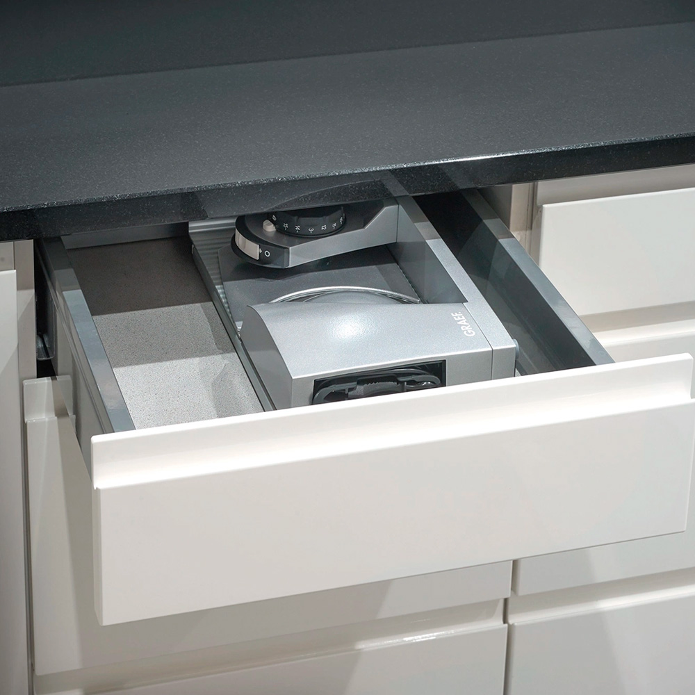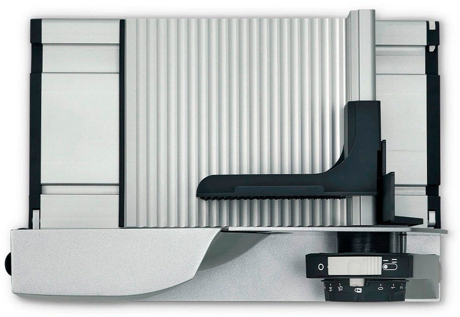 MYtiny обеспечивает тончайшую нарезку с помощью 170-миллиметрового зубчатого лезвия с плавной регулировкой толщины нарезки от 0 до 15 мм. Центральный блок управления оснащен устройством безопасности включения и блокирует нож и выключатель при транспортировке или хранении MYtiny. Максимальная высота продукта для нарезки 150 мм.