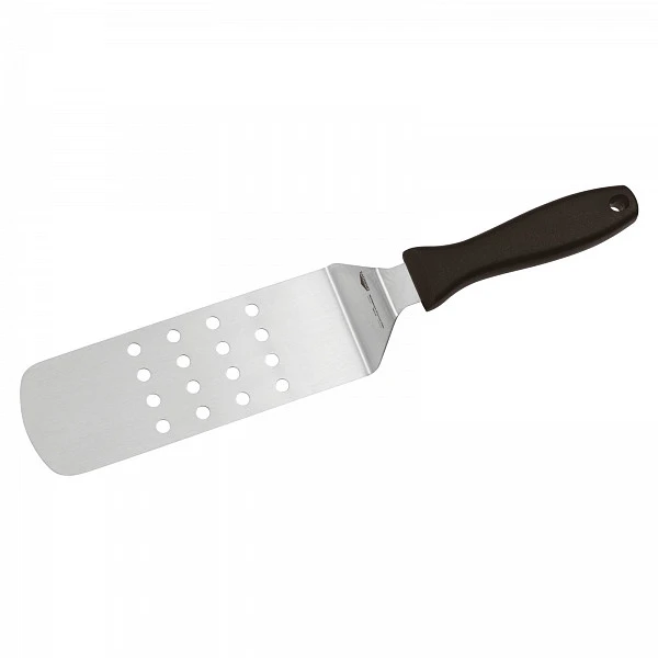 Лопатка перфорированная изогнутая Paderno 24х7см 18517-24 используется в процессе приготовления различных блюд на предприятиях общественного питания, в домашних условиях и на выездных мероприятиях.