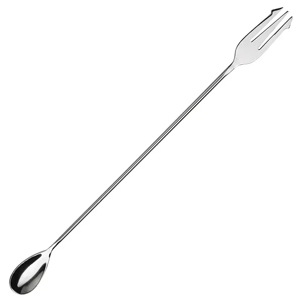 Ложка барная с вилочкой Prohotel сталь нерж. ,L=33,B=2см серебрист. (02050158) - специальная ложка, которой пользуются бармены при приготовлении смешанных напитков (миксов) и коктейлей. Ложка имеет удлиненную ручку. Кажущаяся простота этого инструмента при его предельной полезности позволяют считать его одним из символов барной культуры.