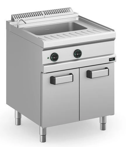 Макароноварка Apach APPE-77P/PL 700-й серии используется на предприятиях общественного питания и торговли для приготовления спагетти, пасты и прочих изделий из теста. Модель оснащена закрытым шкафом и электромеханической панелью управления с терморегулятором, таймером и световым индикатором.