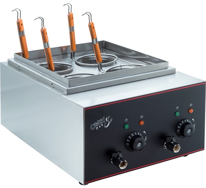 Макароноварка Crazy Pan CP-NC40 используется на предприятиях общественного питания и торговли для быстрого и качественного приготовления макаронных изделий, изделий из теста, пельменей, риса, овощей, сосисок, яиц, креветок и многих других продуктов.