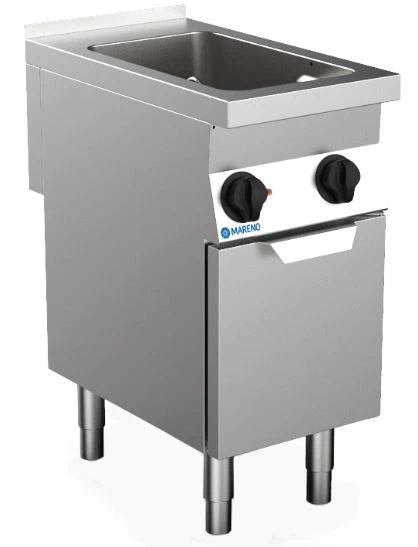 Макароноварка Mareno Easy Line NEPC74E – это профессиональное оборудование, позволяющее готовить различные виды макаронных и пельменных изделий, овощи, яйца, морепродукты и т.д. Для создания оптимальных условий для варки того или иного продукта предусмотрена возможность плавной регулировки температуры посредством термостата, расположенного на электромеханической панели управления.