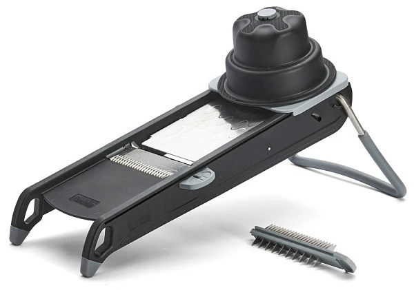 В комплекте: толкатель, горизонтальное двойное лезвие, два фигурных лезвия "жульен" 4 и 10 мм