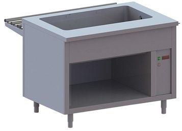 Мармит оснащен открытым шкафом, что позволяет использовать его как дополнительный элемент для хранения.