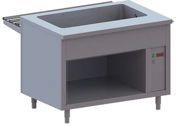 Мармит оснащен открытой подставкой, что позволяет использовать ее как дополнительный элемент для хранения.