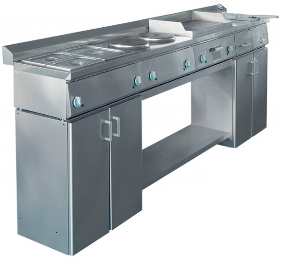 Для установки гастроемкостей меньших размеров предусмотрена съемная перемычка из нержавеющей стали.