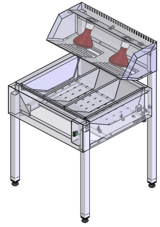 Подогрев продукта и освещение зоны выкладки производится двумя инфракрасными лампами, расположенными над ванной.