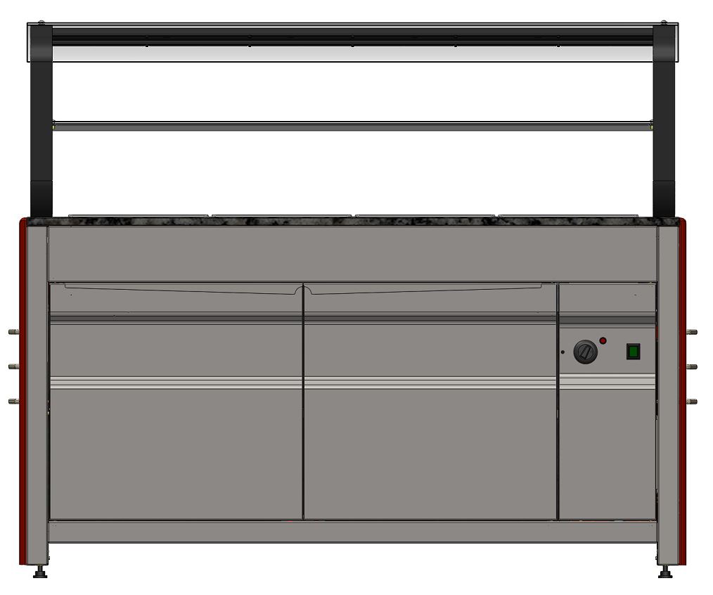 Мармит имеет светодиодную подсветку в нише фасадной части и подсветку рабочей зоны.