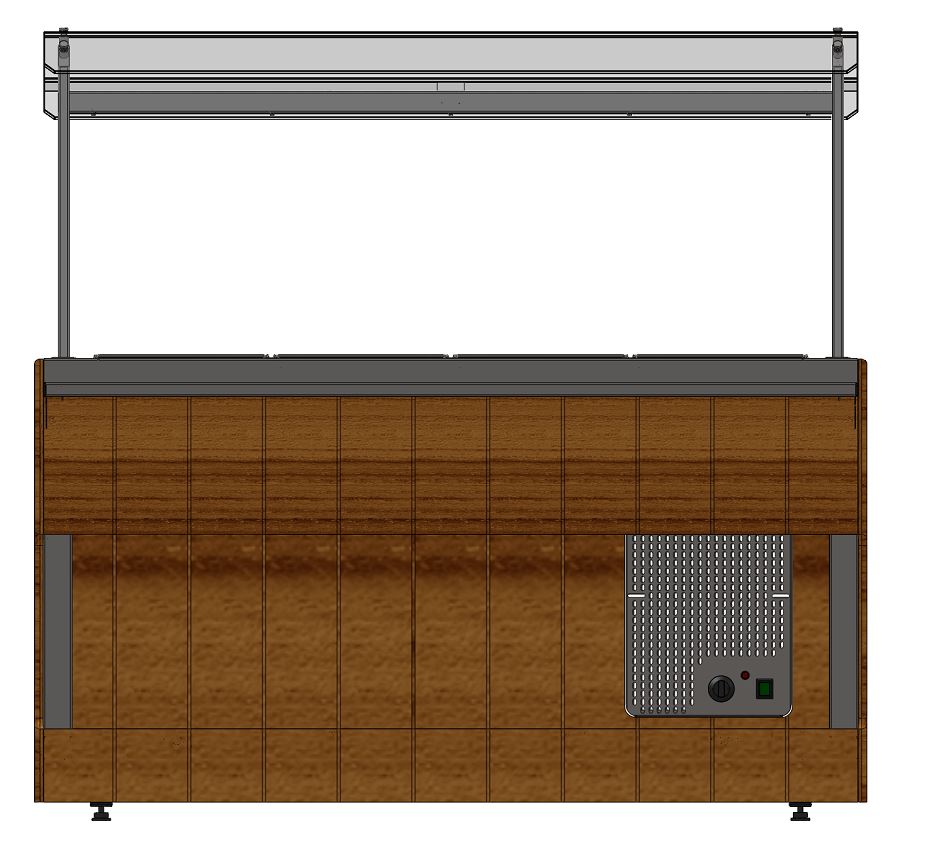 Прилавок имеет светодиодную подсветку в нише фасадной части и подсветку рабочей зоны.