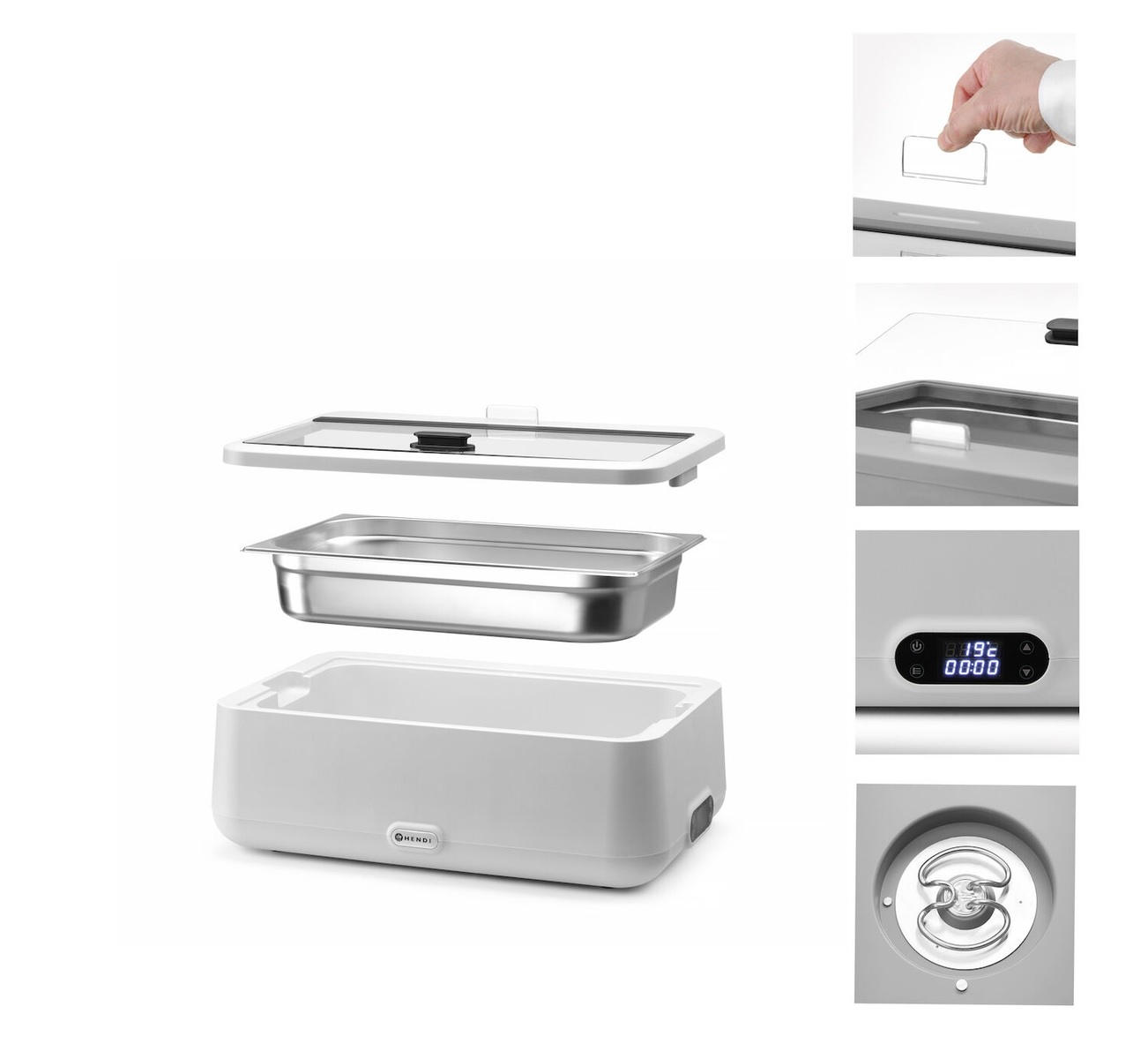 Мармит Hendi UNIQ 470428 идеально подходит для кейтеринга, шведского стола. Просто подключите к сети, наполните контейнер водой, и мармит будет поддерживать идеальную температуру подачи запеканок, мяса, приготовленных овощей, пасты, соусов и любых других блюд.